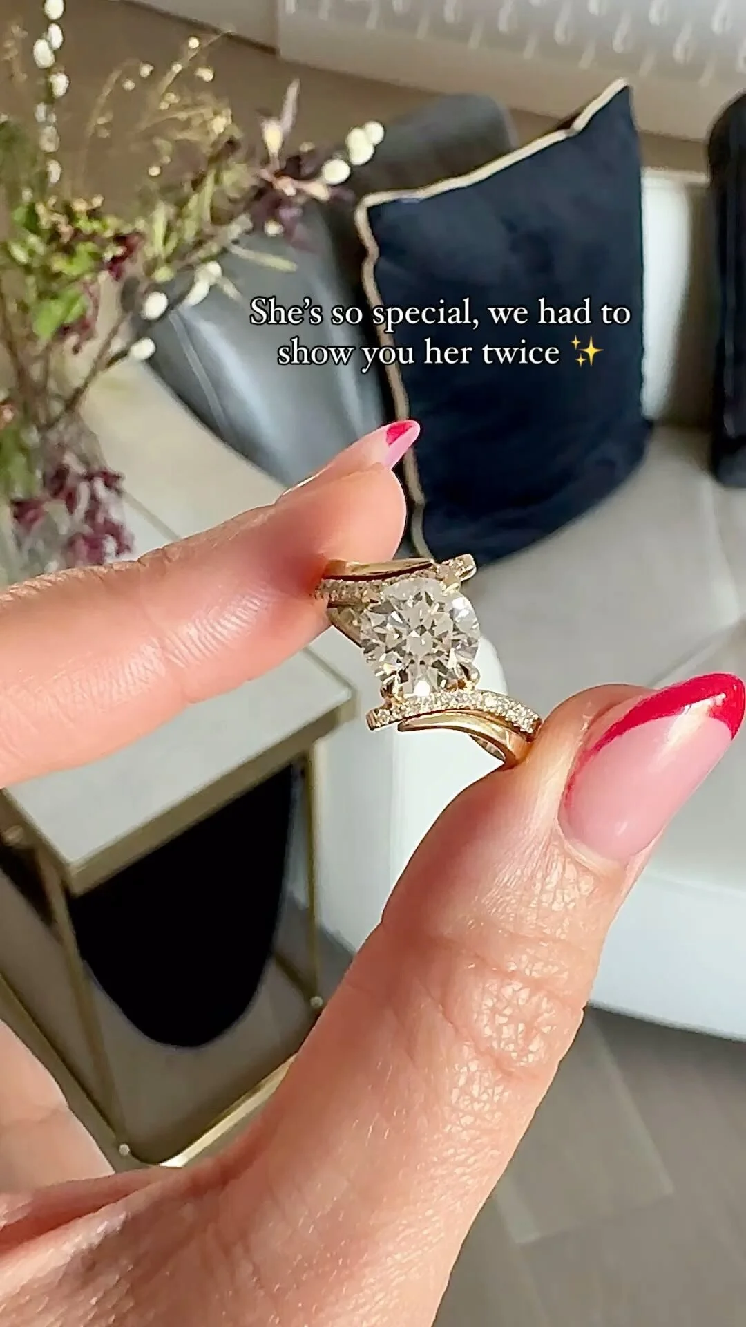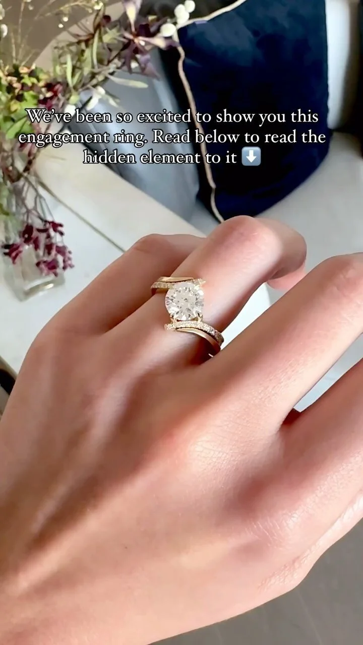 “If I had ever dreamed of the perfect ring, it was this. Simple, elegant, classic, and with a slight twist. It’s one of my most treasured possessions and reminds me of his sweet proposal every day.